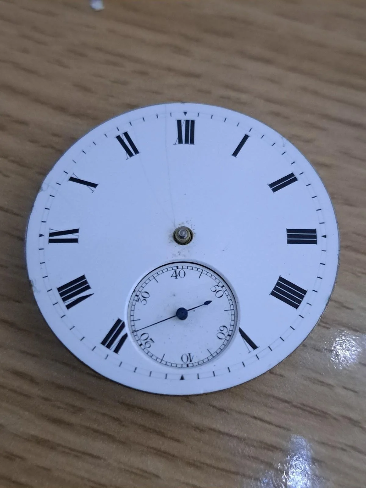 The enamel dial presents well overall with only a fine hairline crack , which is typical for watches of this age.