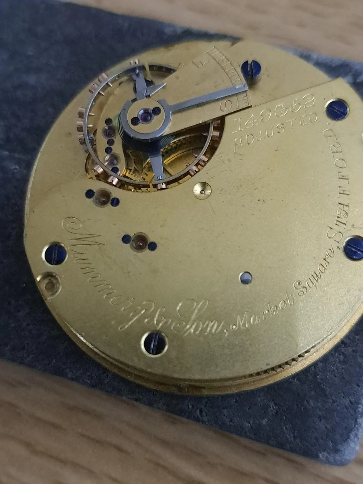 This movement is marked “Adjusted” and carries the serial number 149652 .