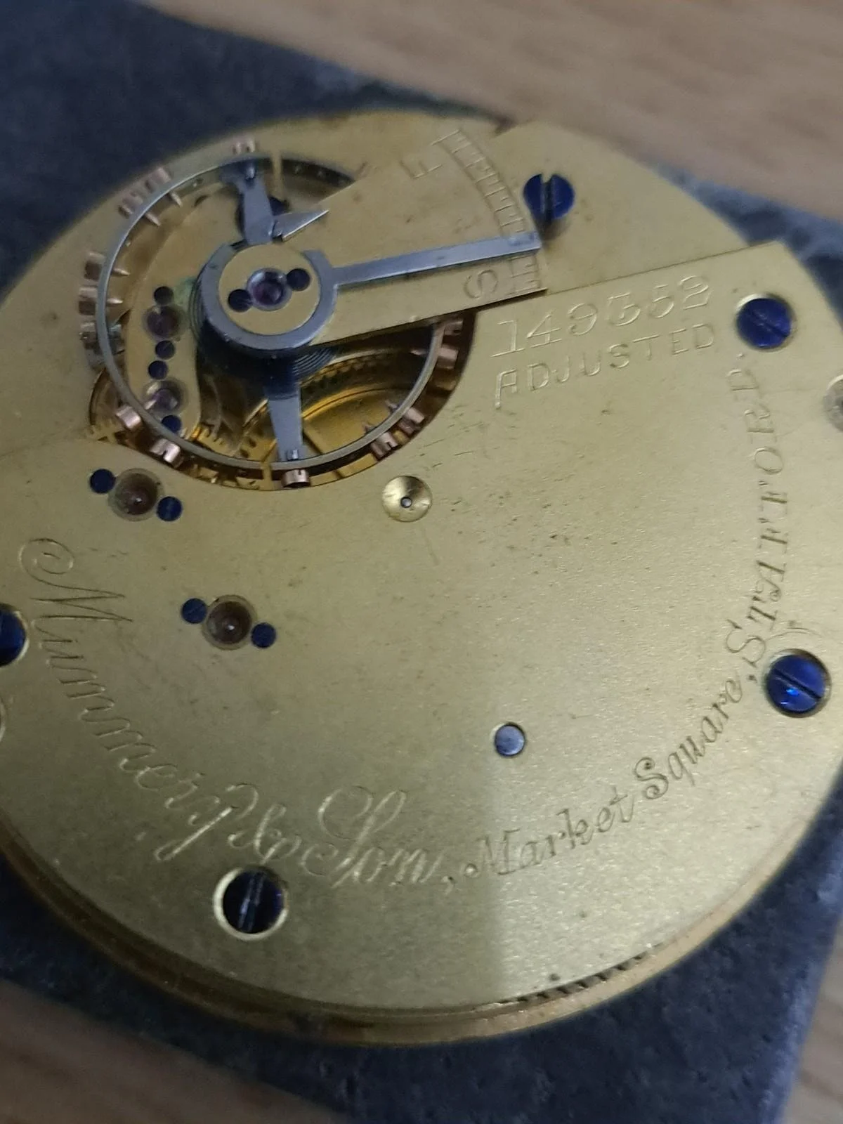 Antique English pocket watch movement signed William F. Holm, Market Square, Stalford .