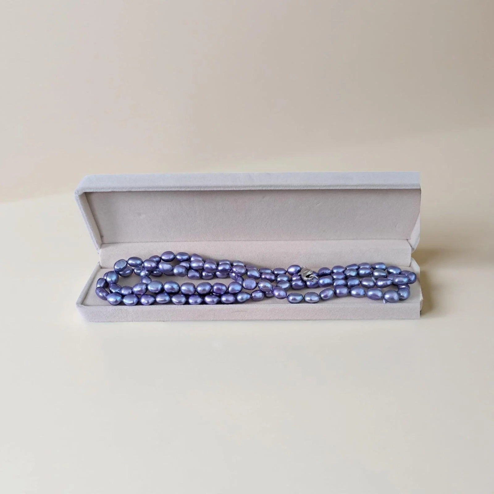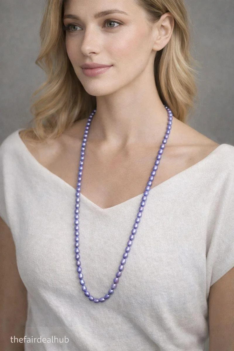 A striking Honora long freshwater pearl necklace featuring lustrous purple-toned pearls with natural iridescence.