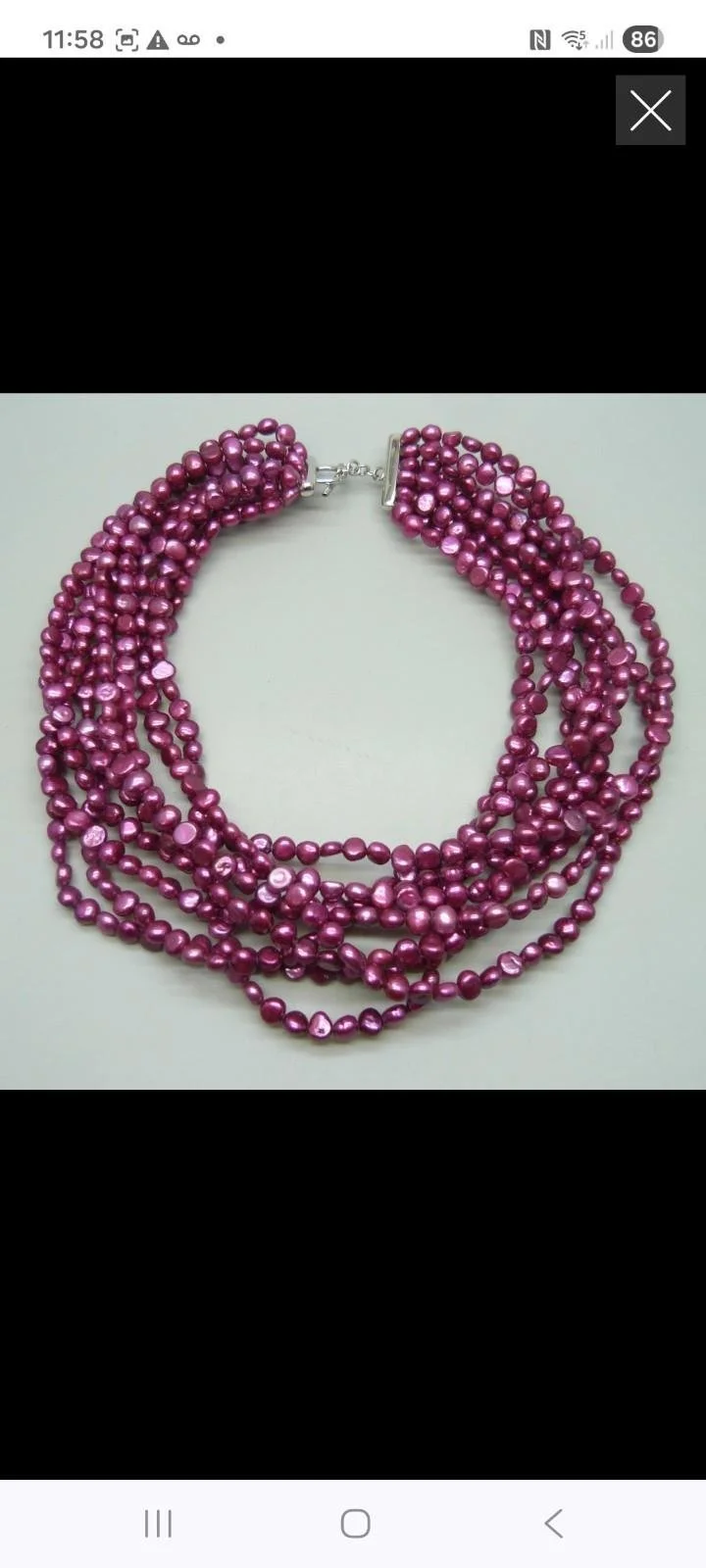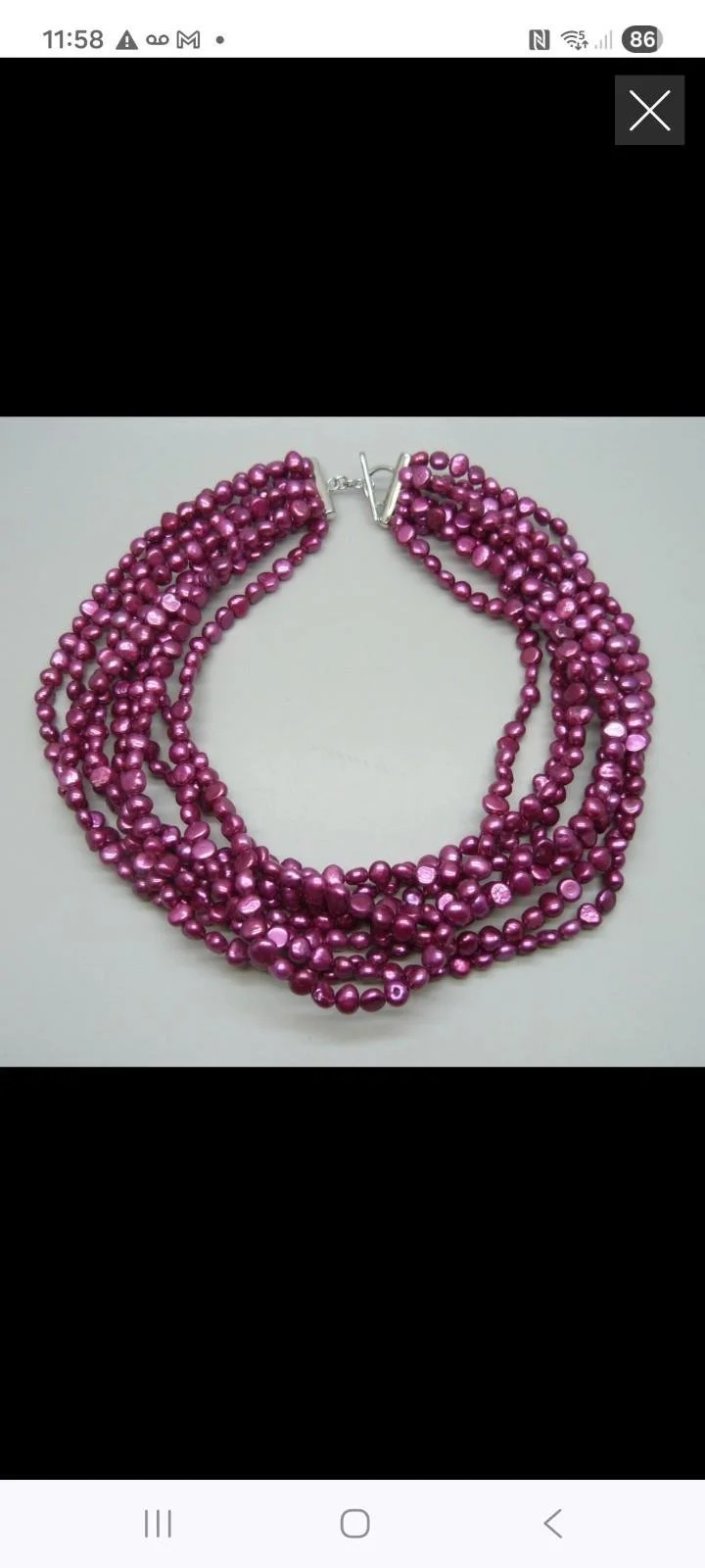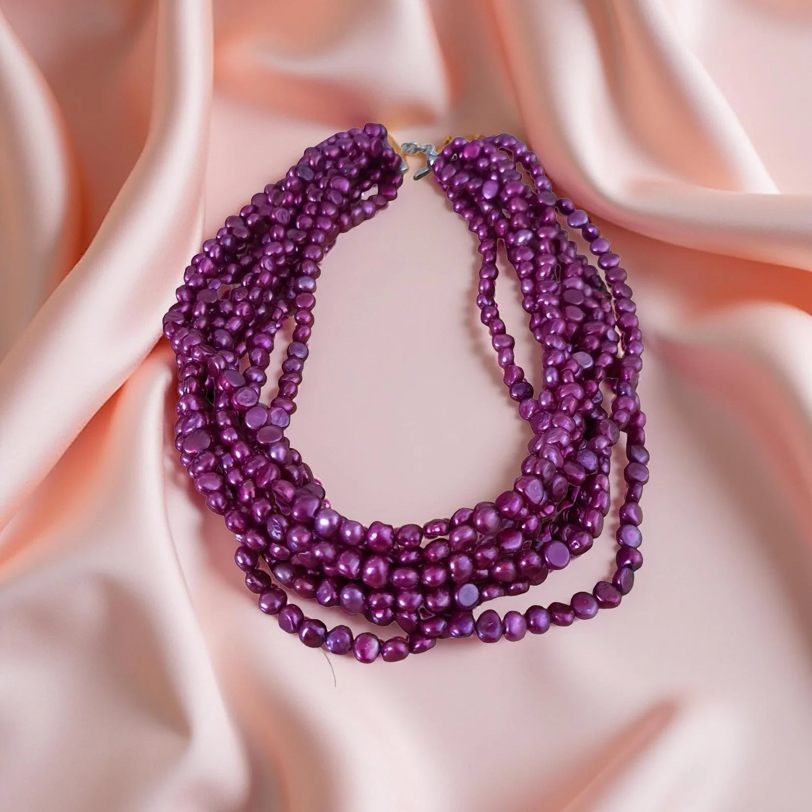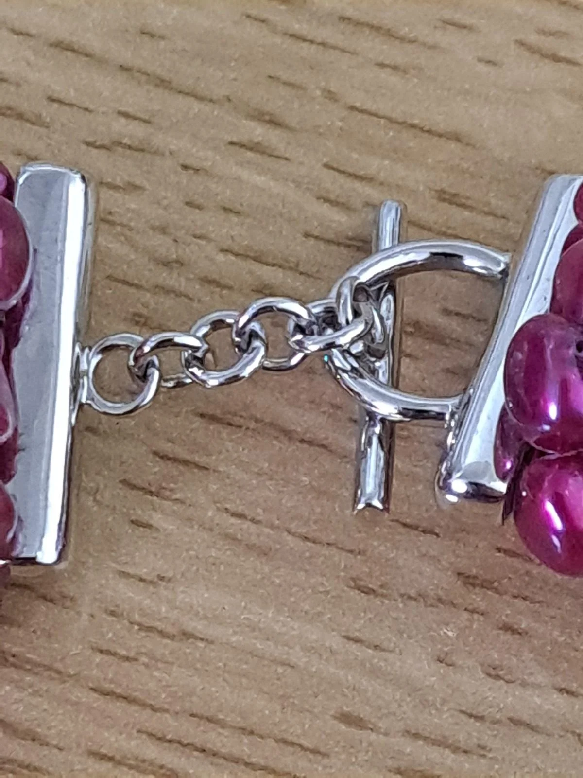 Multi Strand Magenta Freshwater Pearl Necklace Sterling Silver Toggle Clasp 207G