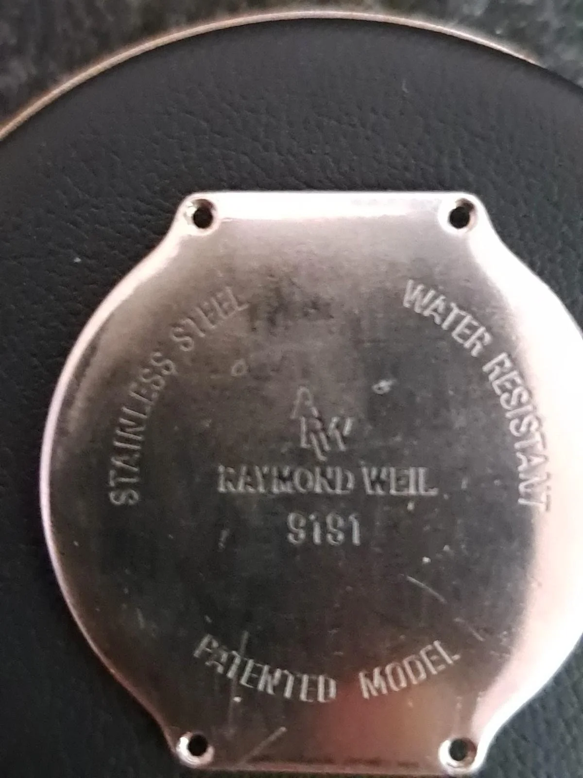 - Case Back: Stainless steel, marked Raymond Weil 9181 Patented Model