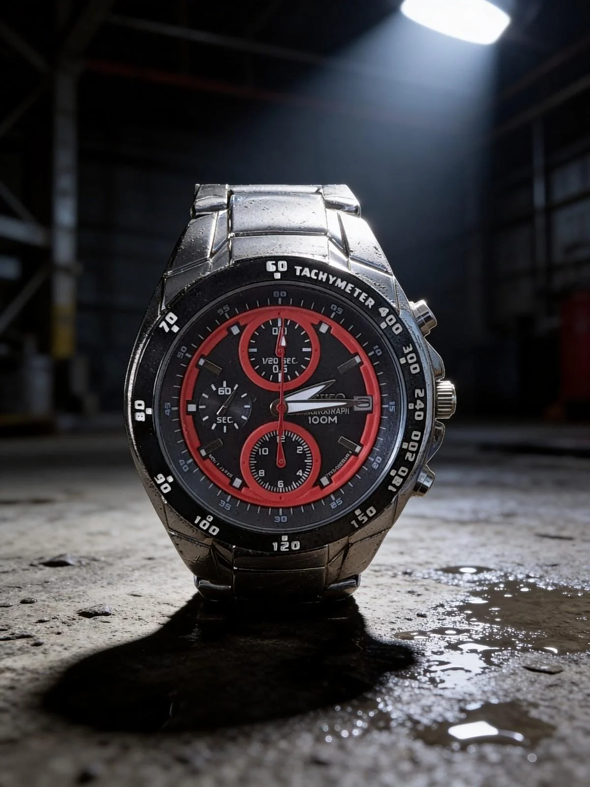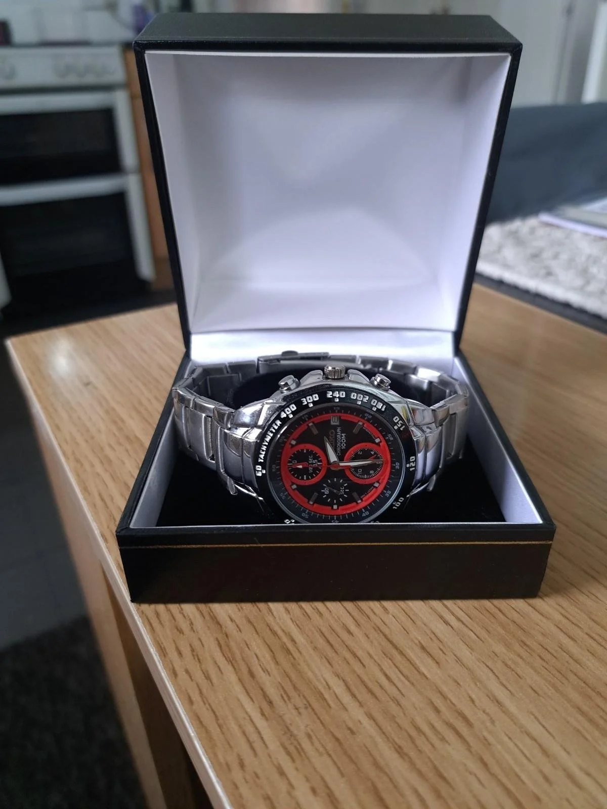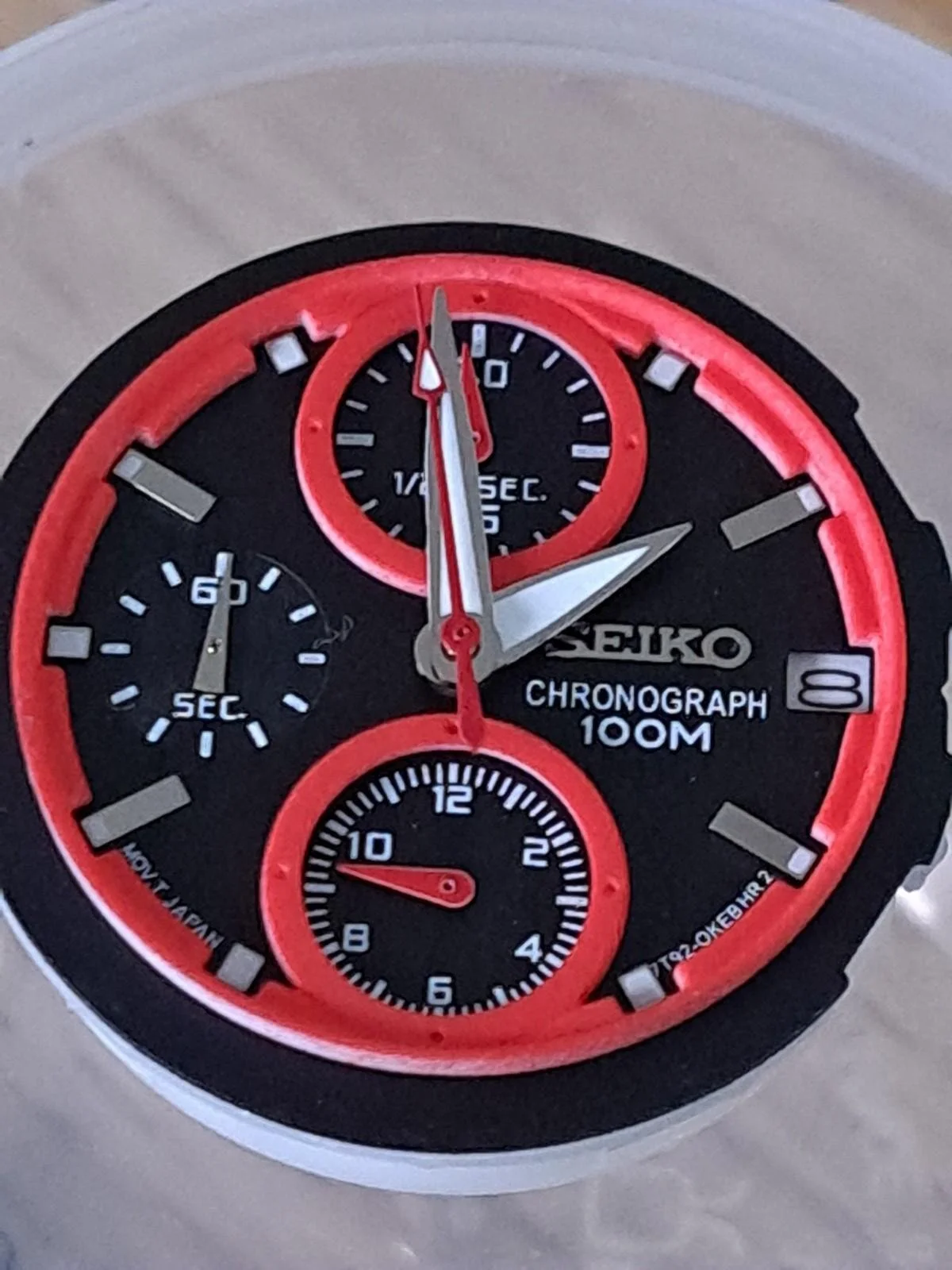 Dial: Black with red chronograph rings