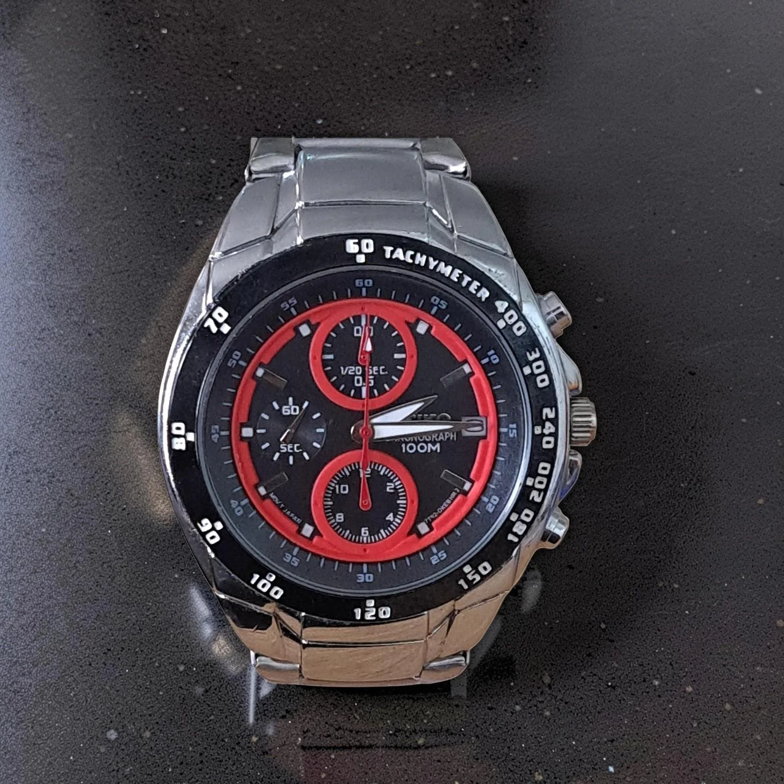Seiko Chronograph 100M Mens Watch 7T92-0HE0 Red & Black Dial Tachymeter...