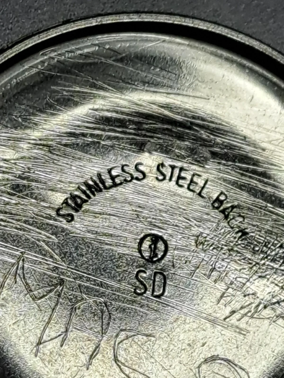 Case: Gold-plated, stainless steel back marked “Stainless Steel Back”